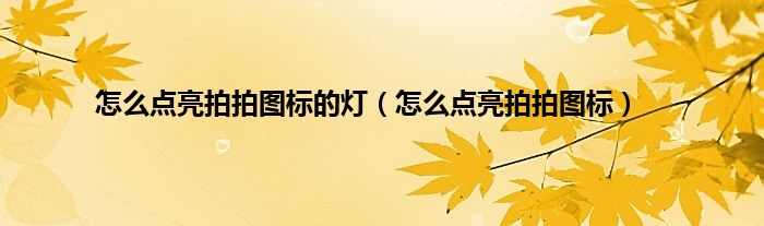 大家好,小问来为大家解答以上问题。怎么点亮拍拍图标的灯,怎么点亮拍拍图标这个很多人还不知道,现在让我们一起来看看吧!