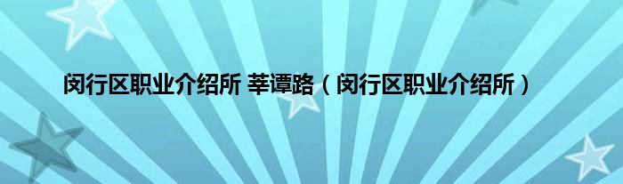 以上就是【闵行区职业介绍所 莘谭路,闵行区职业介绍所】相关内容。