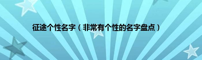 大家好,征途个性名字,非常有个性的名字盘点很多人还不知道,现在让我们一起来看看吧!
