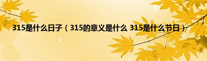 本文,315是什么日子,315的意义是什么 315是什么节日到此就分享完毕,希望对大家有所帮助。