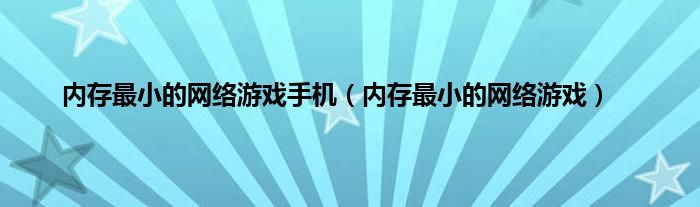 大家好,小问来为大家解答以上问题。内存最小的网络游戏手机,内存最小的网络游戏这个很多人还不知道,现在让我们一起来看看吧!