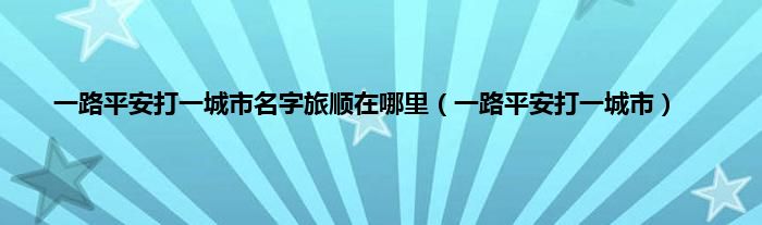 大家好,一路平安打一城市名字旅顺在哪里,一路平安打一城市很多人还不知道,现在让我们一起来看看吧!