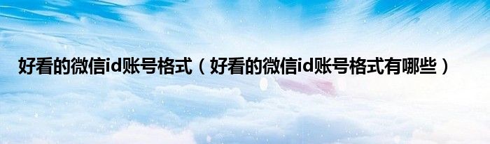 大家好,好看的微信id账号格式,好看的微信id账号格式有哪些很多人还不知道,现在让我们一起来看看吧!