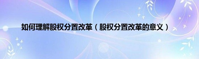 大家好,如何理解股权分置改革,股权分置改革的意义很多人还不知道,现在让我们一起来看看吧!