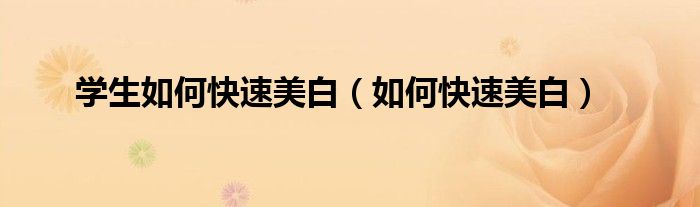 以上就是【学生如何快速美白,如何快速美白】相关内容。