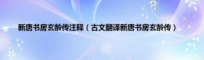 本文,新唐书房玄龄传注释,古文翻译新唐书房玄龄传到此就分享完毕,希望对大家有所帮助。