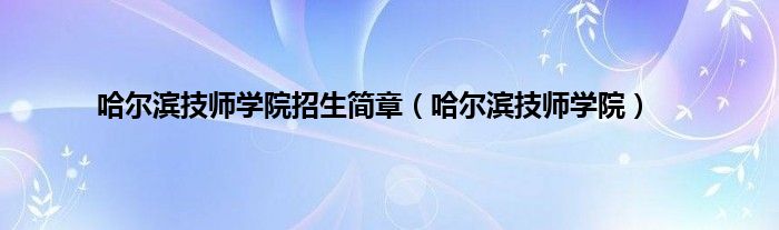 以上就是【哈尔滨技师学院招生简章,哈尔滨技师学院】相关内容。