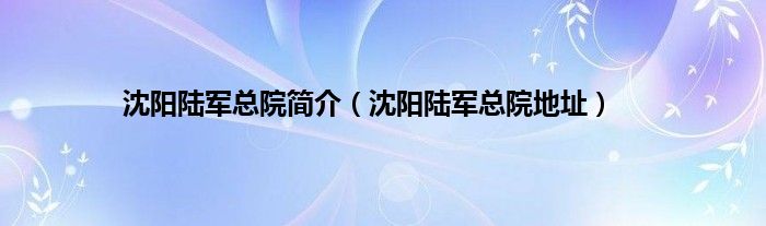 以上就是【沈阳陆军总院简介,沈阳陆军总院地址】相关内容。
