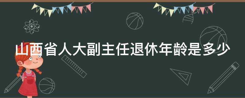 山西省人大副主任退休年龄是男年满六十周岁,女年满五十周岁,连续工龄满十年。山西省人民代表大会,是山西省的国家权力机关。根据《中华人民共和国地方各级人民代表大会和地方各级人民政府组织法》规定,山西省人民代表大会是山西省国家权力机关,它的常设机关是山西省人民代表大会常务委员会,每届任期五年。2021年6月25日,山西省第十三届人民代表大会第五次会议补选:林武为山西省第十三届人民代表大会常务委员会主任。