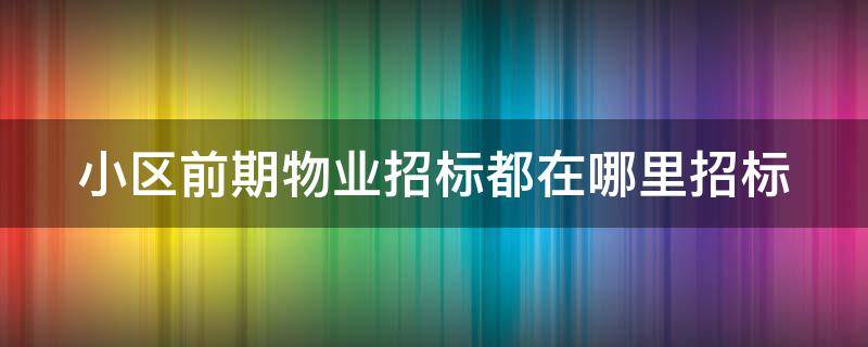 小区前期物业招标在中国招投标网、全国招标信息网、中国物业招投标网、各省市地区直属招投标官方网站、各个省市地区房屋管理部门下属的物业招投标网等网站招标。物业一词译自英语property或estate,由香港传入沿海、内地,其含义为财产、资产、地产、房地产、产业等。该词自20世纪80年代引入国内,现已形成了一个完整的概念,即:物业是指已经建成并投入使用的各类房屋及其与之相配套的设备、设施和场地。