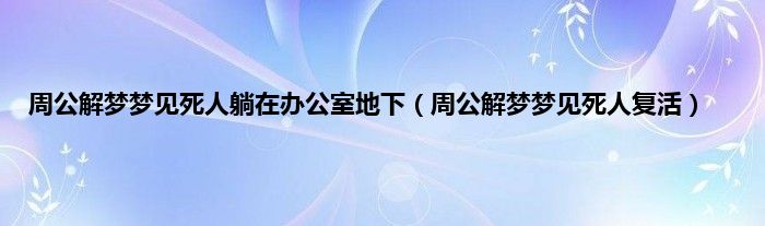 大家好,综合小编来为大家讲解下。周公解梦梦见死人躺在办公室地下,周公解梦梦见死人复活这个很多人还不知道,现在让我们一起来看看吧!