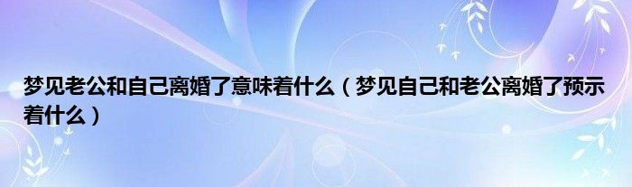 一、梦见自己和老公离婚了的梦境解析: 梦见自己和老公离婚了,预示着运势不错,意味着梦者一切顺利,要注意夫妻感情,多加倍珍惜。