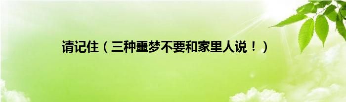 本文请记住,三种噩梦不要和家里人说!到此分享完毕,希望对大家有所帮助。