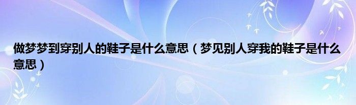 本文做梦梦到穿别人的鞋子是什么意思,梦见别人穿我的鞋子是什么意思到此分享完毕,希望对大家有所帮助。