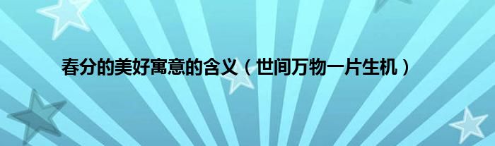 大家好,综合小编来为大家讲解下。春分的美好寓意的含义,世间万物一片生机这个很多人还不知道,现在让我们一起来看看吧!