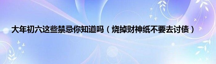 大家好,综合小编来为大家讲解下。大年初六这些禁忌你知道吗,烧掉财神纸不要去讨债这个很多人还不知道,现在让我们一起来看看吧!