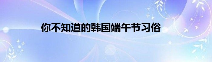 大家好,综合小编来为大家讲解下。你不知道的韩国端午节习俗这个很多人还不知道,现在让我们一起来看看吧!