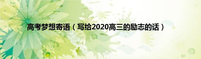 大家好,综合小编来为大家讲解下。高考梦想寄语,写给2020高三的励志的话这个很多人还不知道,现在让我们一起来看看吧!
