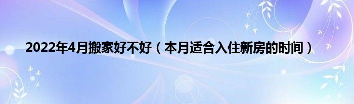 大家好,综合小编来为大家讲解下。2022年4月搬家好不好,本月适合入住新房的时间这个很多人还不知道,现在让我们一起来看看吧!