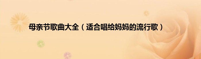 本文母亲节歌曲大全,适合唱给妈妈的流行歌到此分享完毕,希望对大家有所帮助。