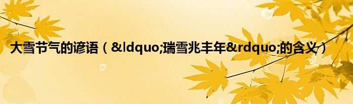 大家好,综合小编来为大家讲解下。大雪节气的谚语,“瑞雪兆丰年”的含义这个很多人还不知道,现在让我们一起来看看吧!