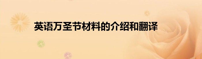 大家好,综合小编来为大家讲解下。英语万圣节材料的介绍和翻译这个很多人还不知道,现在让我们一起来看看吧!