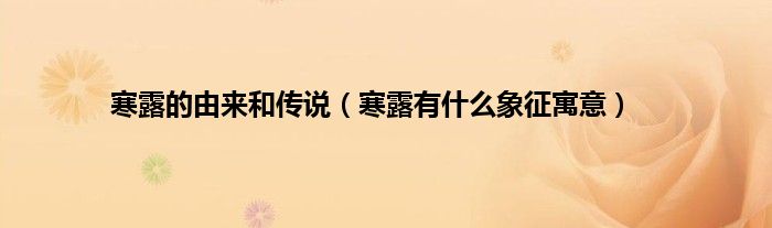 大家好,综合小编来为大家讲解下。寒露的由来和传说,寒露有什么象征寓意这个很多人还不知道,现在让我们一起来看看吧!