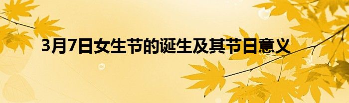 大家好,综合小编来为大家讲解下。3月7日女生节的诞生及其节日意义这个很多人还不知道,现在让我们一起来看看吧!