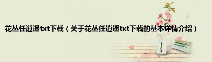本文关于花丛任逍遥txt下载的基本详情介绍就讲解完毕,希望对大家有所帮助。