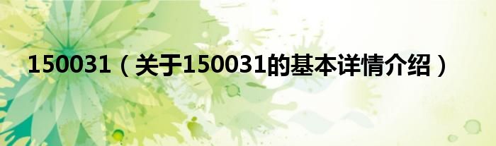 本文关于150031的基本详情介绍就讲解完毕,希望对大家有所帮助。