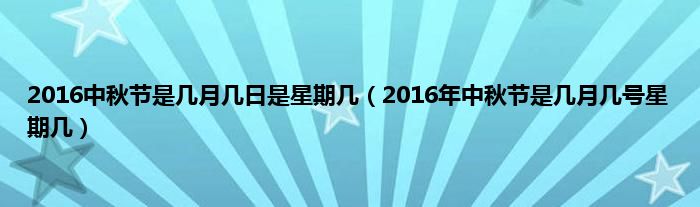 本文2016中秋节是几月几日是星期几,2016年中秋节是几月几号星期几到此分享完毕,希望对大家有所帮助。