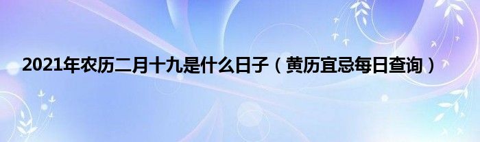 大家好,综合小编来为大家讲解下。2021年农历二月十九是什么日子,黄历宜忌每日查询这个很多人还不知道,现在让我们一起来看看吧!