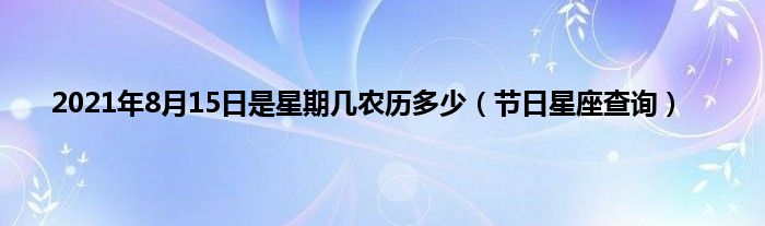 大家好,综合小编来为大家讲解下。2021年8月15日是星期几农历多少,节日星座查询这个很多人还不知道,现在让我们一起来看看吧!