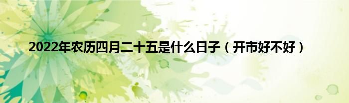 大家好,综合小编来为大家讲解下。2022年农历四月二十五是什么日子,开市好不好这个很多人还不知道,现在让我们一起来看看吧!