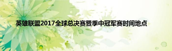 大家好,综合小编来为大家讲解下。英雄联盟2017全球总决赛暨季中冠军赛时间地点这个很多人还不知道,现在让我们一起来看看吧!