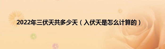 大家好,综合小编来为大家讲解下。2022年三伏天共多少天,入伏天是怎么计算的这个很多人还不知道,现在让我们一起来看看吧!