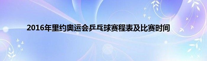 大家好,综合小编来为大家讲解下。2016年里约奥运会乒乓球赛程表及比赛时间这个很多人还不知道,现在让我们一起来看看吧!
