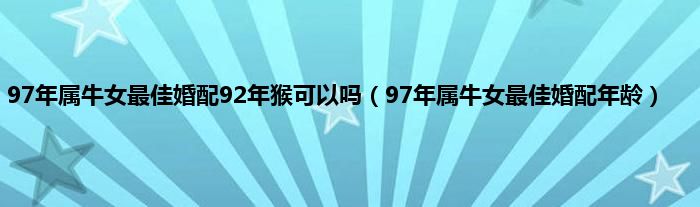 大家好,综合小编来为大家讲解下。97年属牛女最佳婚配92年猴可以吗,97年属牛女最佳婚配年龄这个很多人还不知道,现在让我们一起来看看吧!