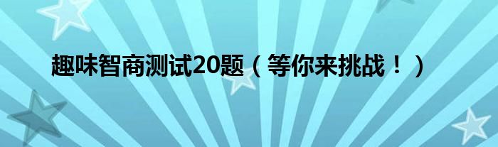 本文趣味智商测试20题,等你来挑战!到此分享完毕,希望对大家有所帮助。