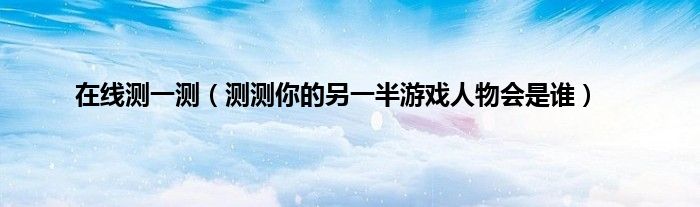 大家好,综合小编来为大家讲解下。在线测一测,测测你的另一半游戏人物会是谁这个很多人还不知道,现在让我们一起来看看吧!
