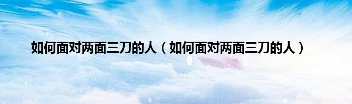 大家好,综合小编来为大家讲解下。如何面对两面三刀的人,如何面对两面三刀的人这个很多人还不知道,现在让我们一起来看看吧!