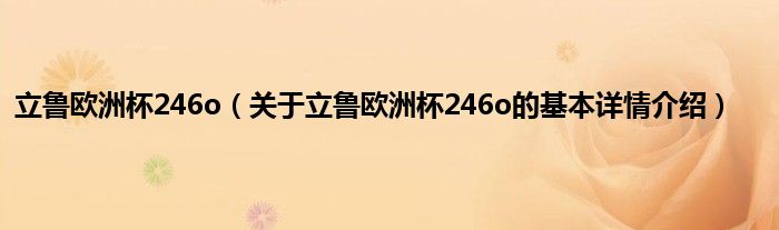 立鲁欧洲杯246o(关于立鲁欧洲杯246o的基本详情介绍)