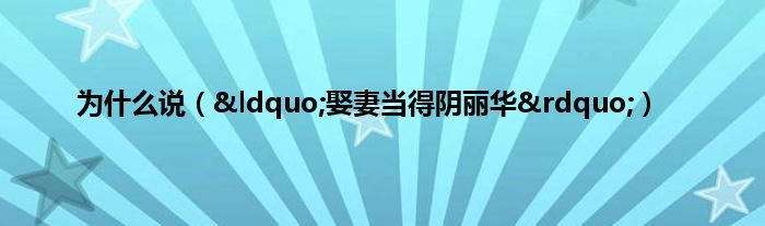 大家好,综合小编来为大家讲解下。为什么说,“娶妻当得阴丽华”这个很多人还不知道,现在让我们一起来看看吧!