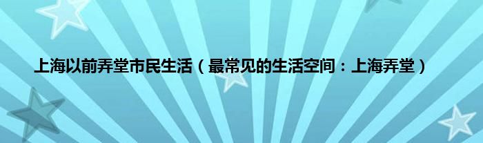 本文上海以前弄堂市民生活,最常见的生活空间:上海弄堂到此分享完毕,希望对大家有所帮助。