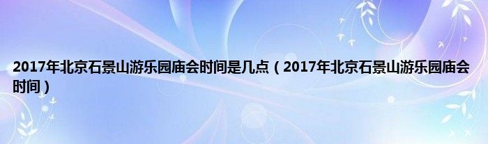 大家好,综合小编来为大家讲解下。2017年北京石景山游乐园庙会时间是几点,2017年北京石景山游乐园庙会时间这个很多人还不知道,现在让我们一起来看看吧!