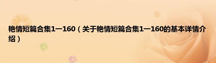 本文关于艳情短篇合集1一160的基本详情介绍就讲解完毕,希望对大家有所帮助。