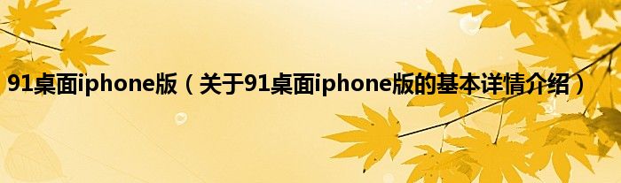 本文关于91桌面iphone版的基本详情介绍就讲解完毕,希望对大家有所帮助。