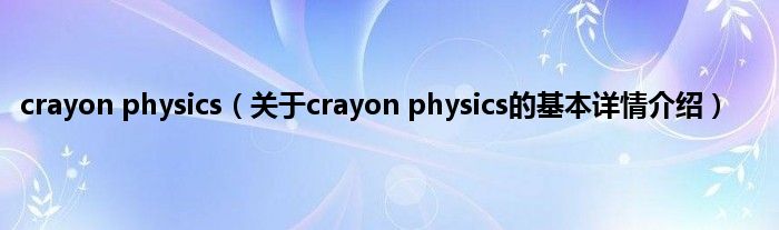本文关于crayon physics的基本详情介绍就讲解完毕,希望对大家有所帮助。