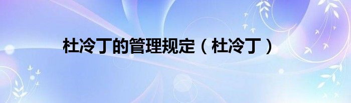 以上就是【杜冷丁的管理规定,杜冷丁】相关内容。