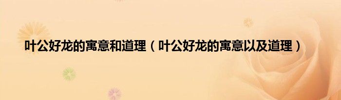 欢迎观看本篇文章,小升来为大家解答以上问题。叶公好龙的寓意和道理,叶公好龙的寓意以及道理很多人还不知道,现在让我们一起来看看吧!